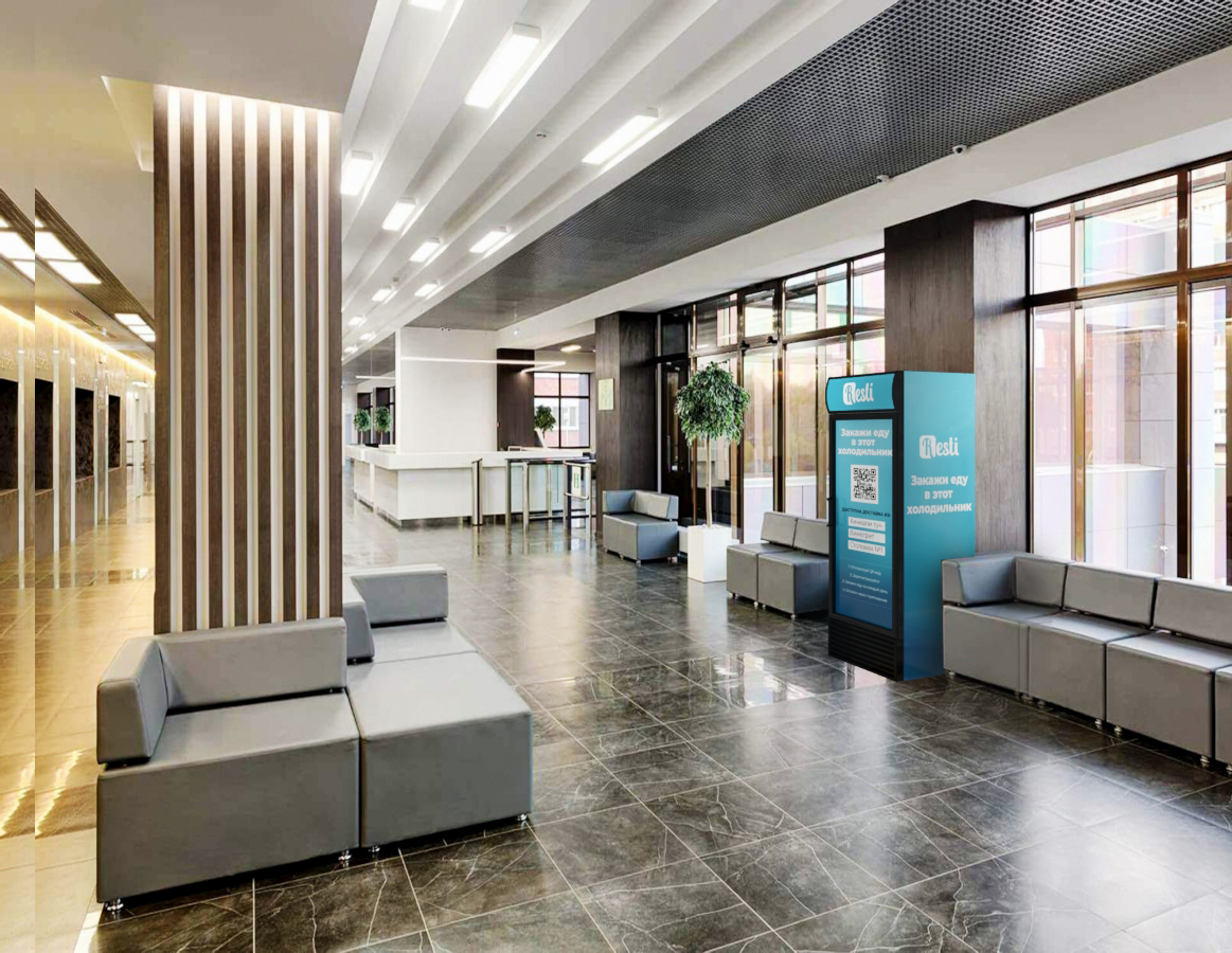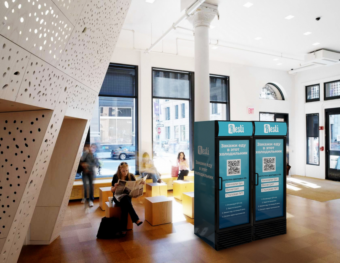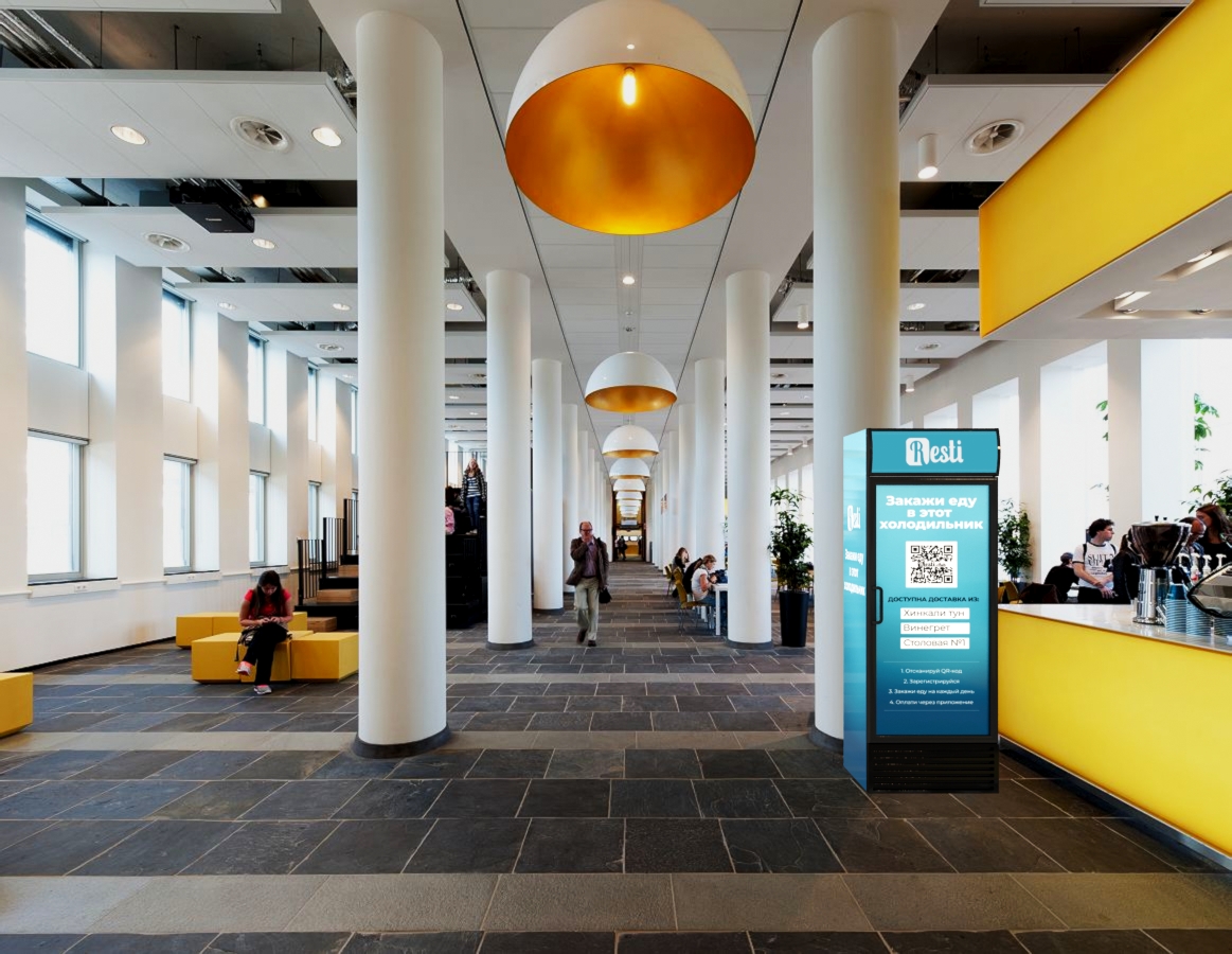 Люди заказывают еду через приложение Resti и забирают заказы в этом постамате